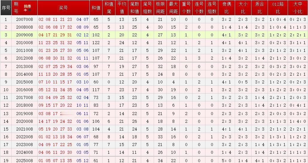 历史同期开奖号码统计表已为您整理如下(详见附图),通过对比分析历年同期开奖数据的分布规律,彩民朋友们可以尝试从中挖掘潜在的数字关联模式或冷热号趋势,值得一提的是,历史同期后区重号的概率非常高,这也很罕见的。