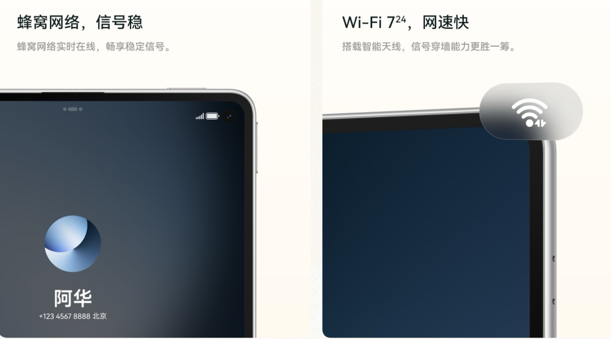针对手持使用时可能遮挡天线的问题,这款小平板首次搭载Wi-Fi智能天线技术,横屏手握时自动切换到后盖镜头模组的Deco天线,竖屏时蜂窝天线切换到不被握住的分集天线,无论怎么握都不影响网络速率。即使在地铁、电梯等信号复杂的环境中,也能保持稳定连接。更值得一提的是其双向北斗卫星消息功能,在无地面网络的户外探险、偏远地区出行时,仍能传递文字和图片消息,为安全提供重要保障。