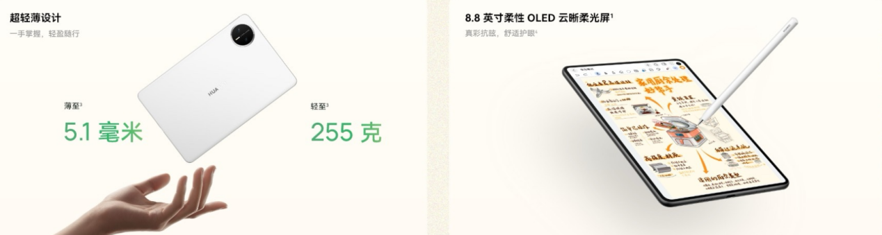 8.8英寸柔性OLED云晰柔光屏是办公学习的核心加分项。这块屏幕采用纳米蚀刻技术,表面形成纳米级凹凸纹理,书写时能带来真实的阻尼感,就像在纸质笔记本上书写一样自然,搭配适配的HUAWEI M-Pencil Pro,无论是随手记录灵感、标注文档还是绘制思维导图,都能精准捕捉每一个笔触。同时,屏幕的纳米纹理结构能减少99%的环境干扰光,多层散射技术让屏幕发光更均匀,长时间阅读电子书、处理工作文档,眼睛也不易酸胀。这块屏幕还获得了SGS低视觉疲劳2.1金标认证和德国莱茵TÜV全局护眼3.0认证。