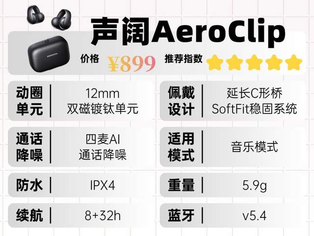 推荐理由:百元价位全能型耳夹式耳机,佩戴。音质、性能都没有明显短板!