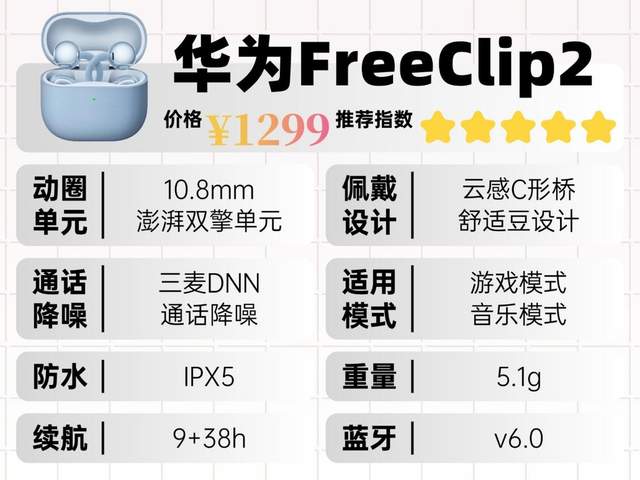推荐理由:耳夹式耳机公认天花板,适合同生态用户。