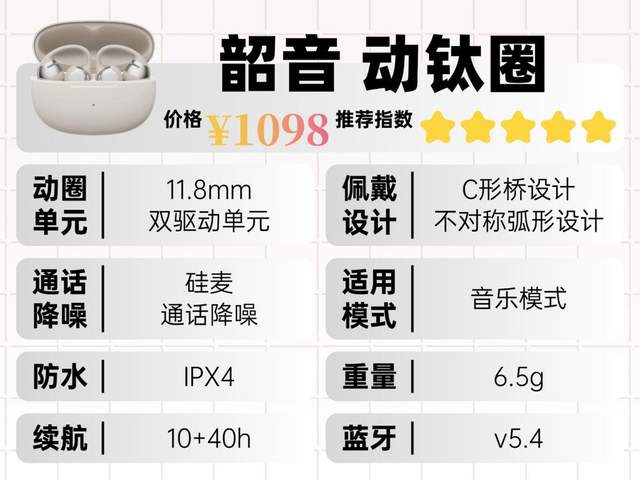 推荐理由:音质、性价比都是五百价位第一梯队的耳夹式耳机!