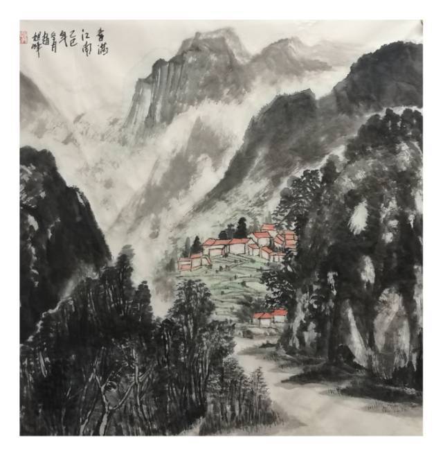 真正让我看重赵旭峰的,是他并未止步于本土师承的滋养。他深知艺术创作需要开阔的视野,于是远赴京华,师从著名山水画家林容生先生。林氏山水被业界称为“新青绿”,其艺术特色在于打破了传统青绿山水的程式化束缚,在朴素的笔墨基底中注入明亮而温润的色彩,既保留了传统青绿的典雅,又赋予作品现代审美意趣;更重要的是,林容生的创作善于在山水景致中引入社会元素,让自然山水不再是孤立的审美对象,而是与人文生活、时代气息相连结。赵旭峰显然从这种艺术理念中汲取了丰厚养分,他的作品在延续长安画坛朴素笔墨精神的同时,多了几分色彩的明快与意境的通透。那些淡淡的青绿、雅致的赭石,不仅丰富了画面的视觉层次,更折射出他对自然与生活的温暖感知,这也让他在风格相对内敛的长安画坛中,形成了自己鲜明的艺术辨识度。