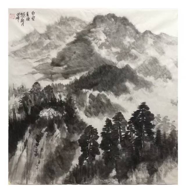 然而,赵旭峰的画中很少有大惊小怪的情节,他不刻意追求宏大的叙事或奇崛的构图,更偏爱在不动声色中捕捉万物的本真状态——山石的肌理、林木的疏朗、云雾的流转,都在他的笔墨中呈现出一种从容不迫的质感。这种特质在当下的创作环境中,却也潜藏着一种风险:容易沦为城市化语境下的套路化表达。许多画家不可谓不勤奋,足迹遍布名山大川,写生稿堆积如山,但作品终究难以动人,核心原因便在于此——他们只做到了“身入自然”,却未能实现“心融自然”,笔墨停留在对物象的浅层描摹,而未触及内心的真实感悟。