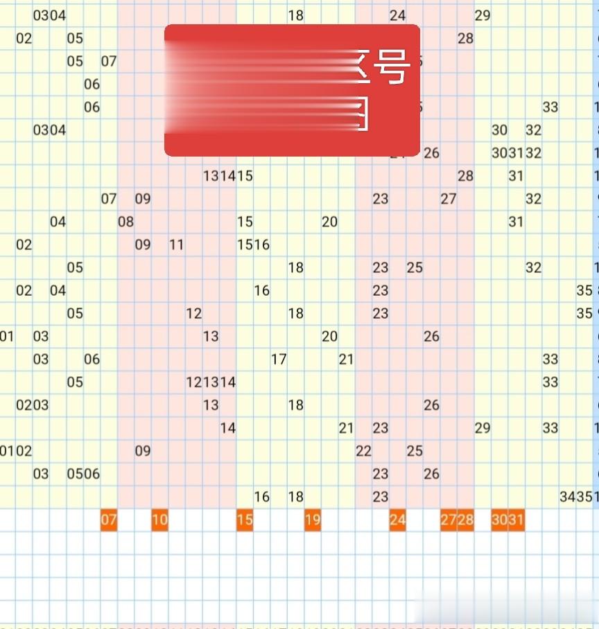 ▲上图红色处号码(0708.1011.15.19.24.2728.3031)是前区冷号,近期弱开,上期仅回补一枚34,本期【括号内】号码最多防二,一,其余当排除号码吧。