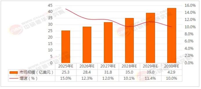03中国机器人能否扎根欧美“庭院”?中研普华产业研究院数据,全球割草机器人市场规模将从2025年的25.3亿美元稳步增长至2030年的42.9亿美元,期间年复合增长率(CAGR)约为10.8%。