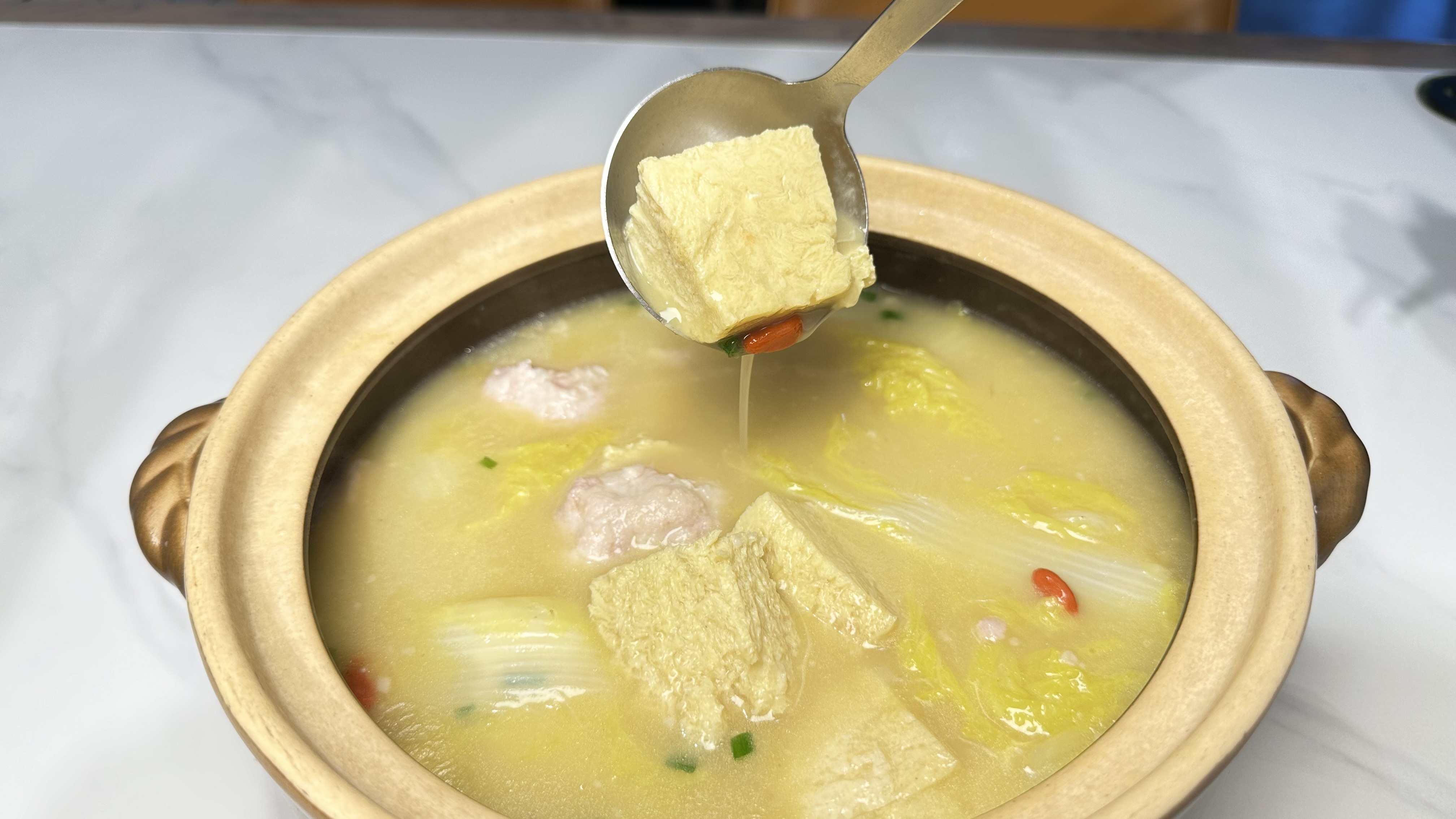 解冻就能下锅,不用费心处理,冬日里懒得折腾时,丢几块进锅,普通的一餐便多了层烟火暖意。它不抢眼,却总能悄悄提升整道菜的风味,这大概就是东北冻豆腐的魔力吧 —— 朴素,却藏着最踏实的美味。