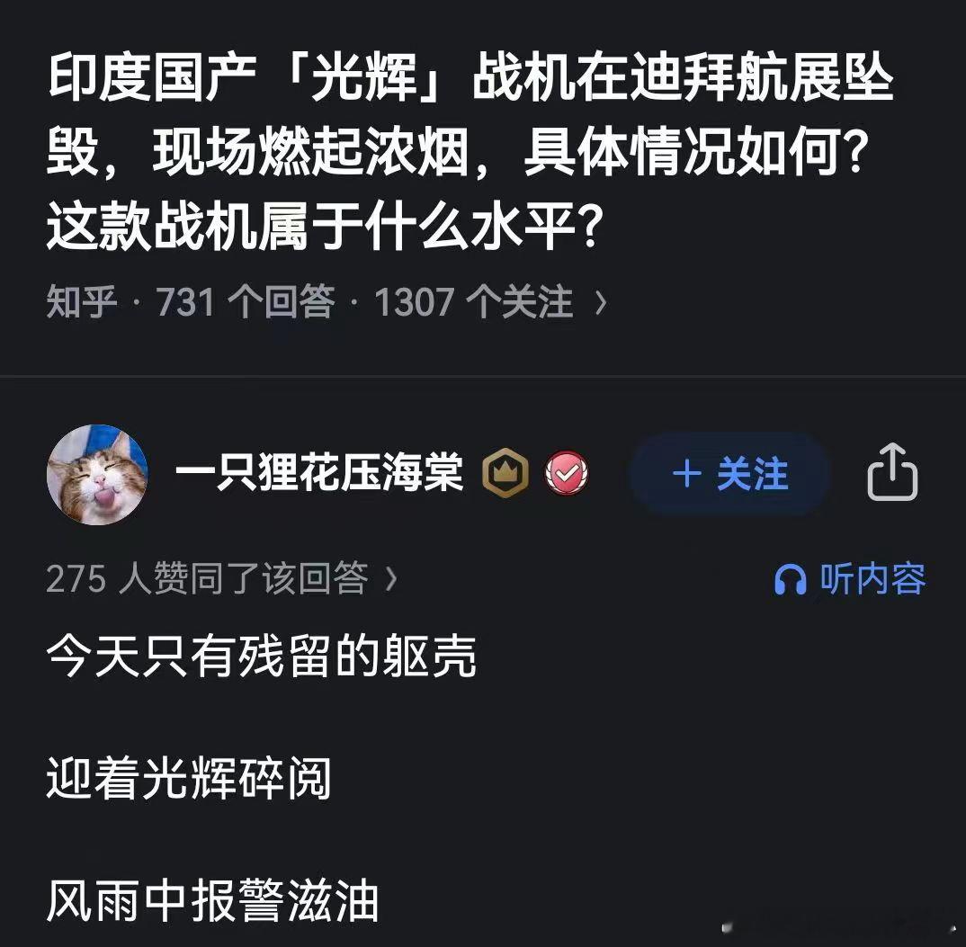 印度空军国产轻型战斗机 “光辉”(Tejas) 在迪拜航展表演时坠毁,飞行员 纳