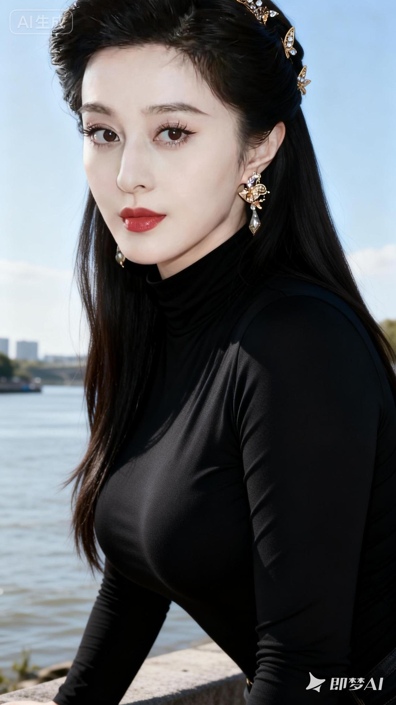 古典美人,红唇微笑,黑纱飘逸,韵味十足!