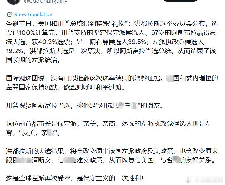 特朗普背书的洪都拉斯总统候选人纳斯里·阿斯富拉(Nasry Asfura被宣布赢