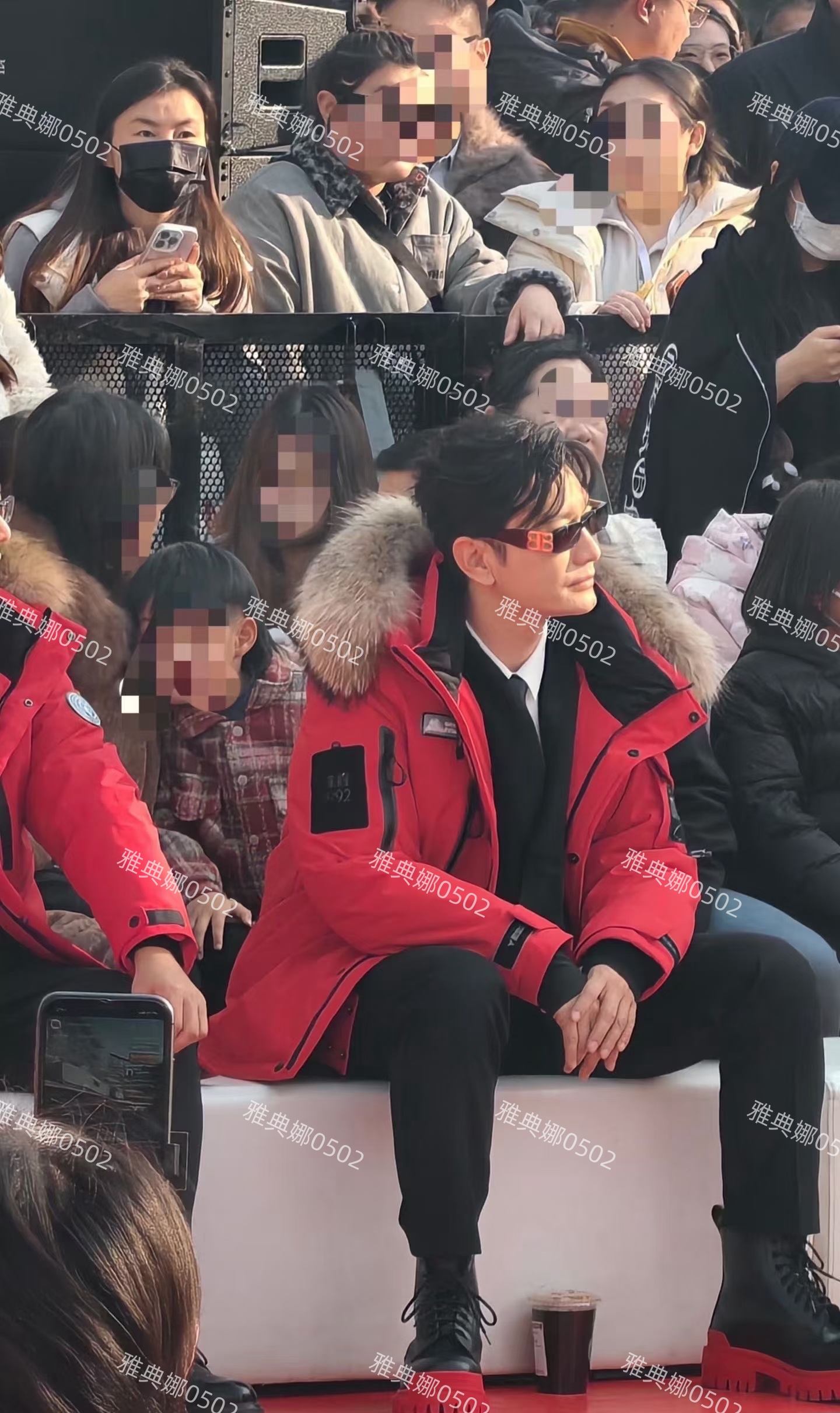 黄晓明确实有点儿霸道总裁情结,戴上墨镜坐在台下的他,知道有很多粉丝的镜头在拍他,为了上镜故意摆出很多很酷的很有型的pose,镜头感很强很敬业。