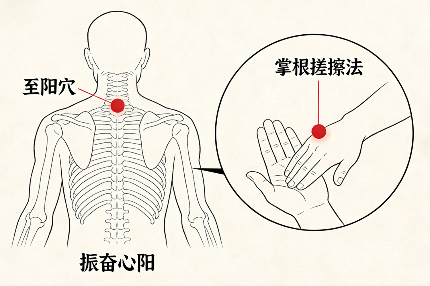 功效:至阳穴为阳气汇聚之处,温通此处可振奋心阳、缓解背心发冷,适合阳气不振、畏寒乏力者。
