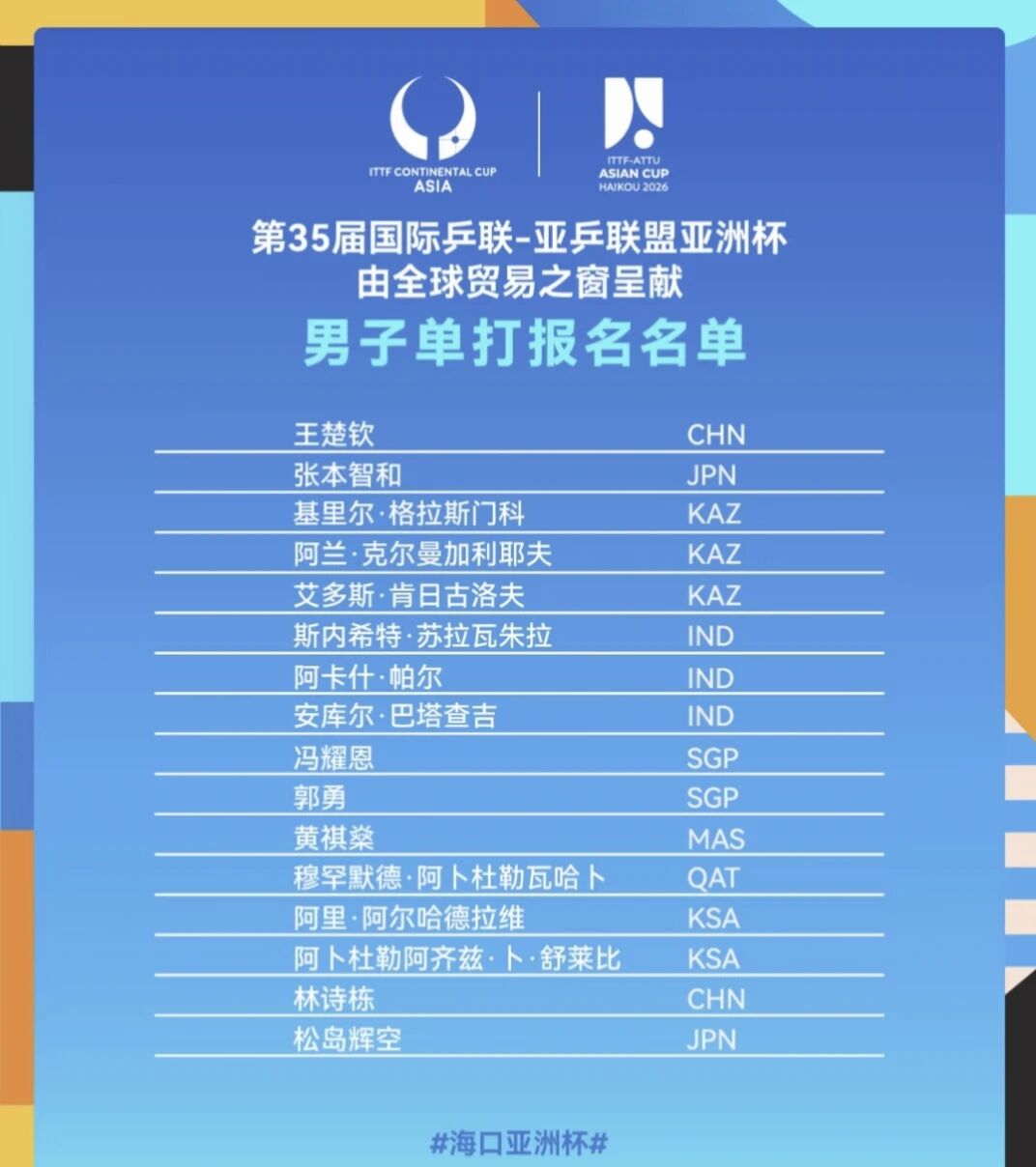 2月4日,第35届乒乓球亚洲杯将在海南海口五源河体育馆内拉开序幕,64位亚洲顶尖选手将会5天展开128场巅峰对决。