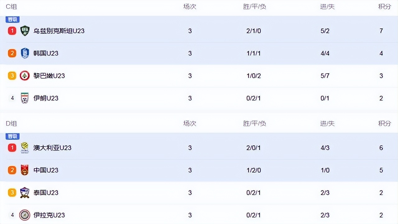 当然,昨晚最大的惊喜,还不是澳大利亚的绝地翻盘。咱们的中国U23小伙子们,给了全国球迷一个实实在在的礼物!在另一场生死战中,中国队稳扎稳打,0-0逼平了泰国队。就是这个平局,让中国队积5分,力压同积2分的伊拉克和泰国,以小组第二的身份成功突围!