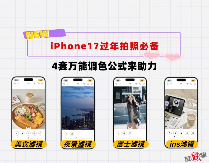 过年期间,谁不想在朋友圈里赢麻了?友友特别能理解那种“拍了一肚子美食,结果发出来灰扑扑”的无奈感受!别担心,友友今天就来给你的iPhone17开个“美颜挂”!