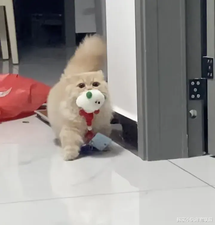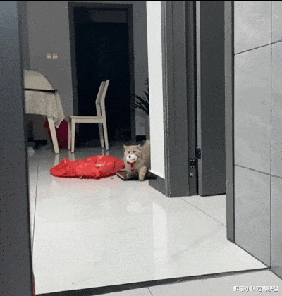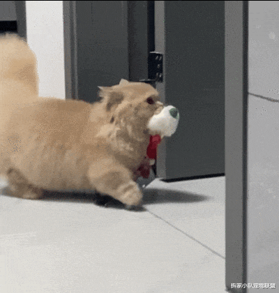 抬起头就瞅见这小家伙迈着小短腿,嘴里咬着钥匙昂着头准备把钥匙藏到另外一个房间。