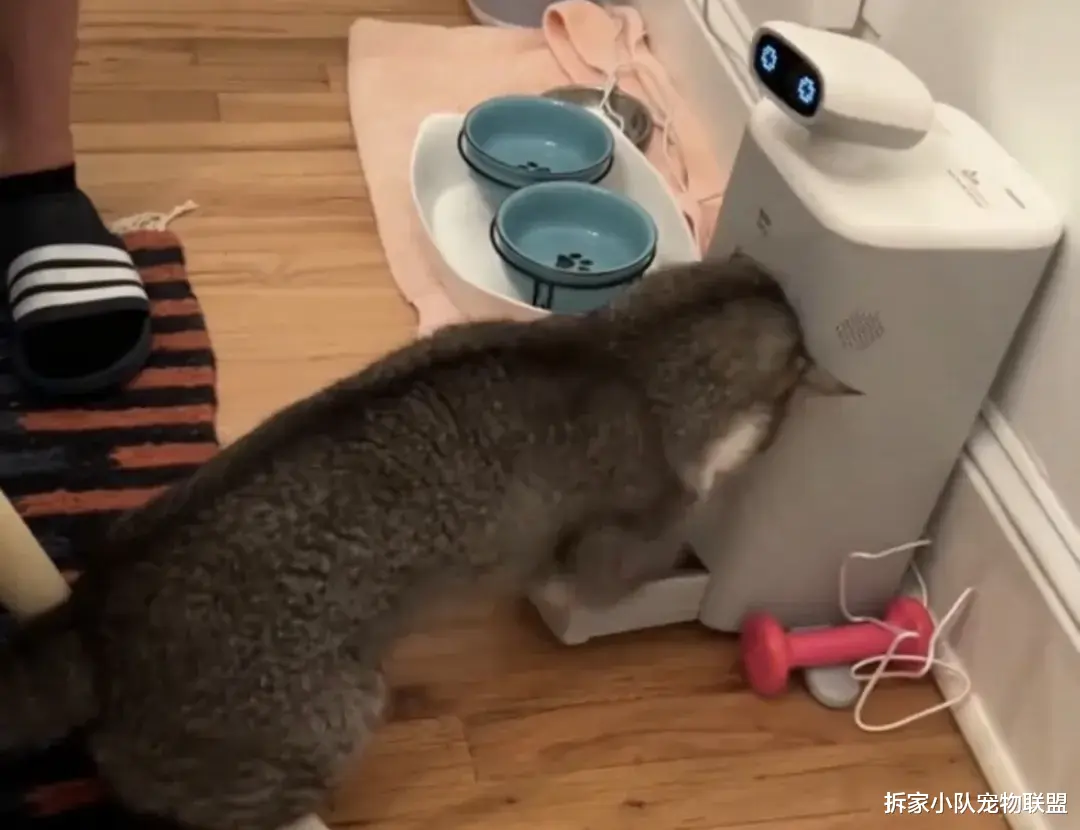 机器人表情最搞笑,看得出很无奈了,这猫是真的饿了!