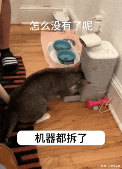 恰巧又到饭点了,急得猫咪跑机器出粮口一阵猛掏。