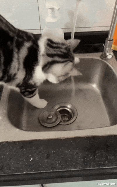 猫猫直接把整个头埋水管下面,顺道再洗个爪,然后开始疯狂甩头模式。
