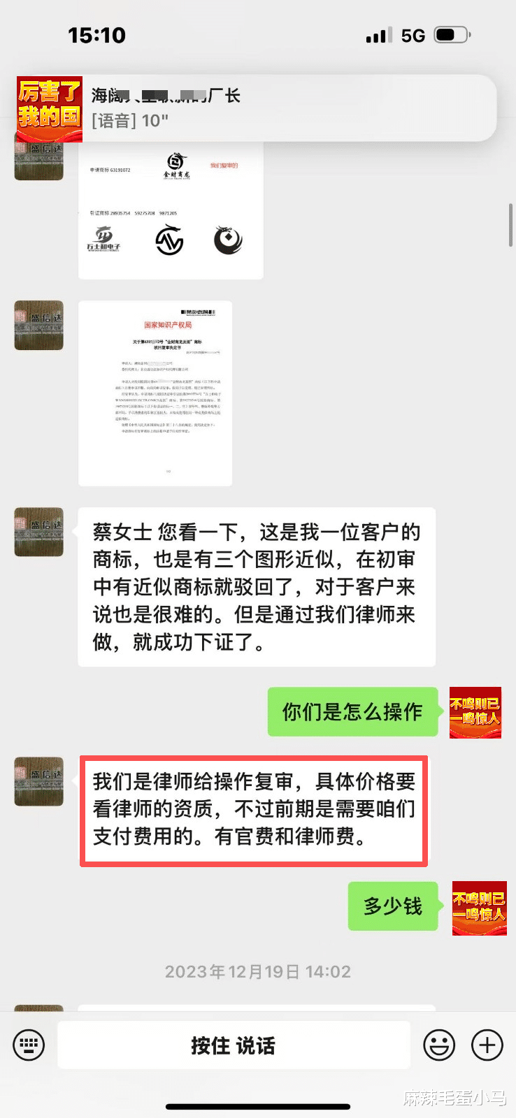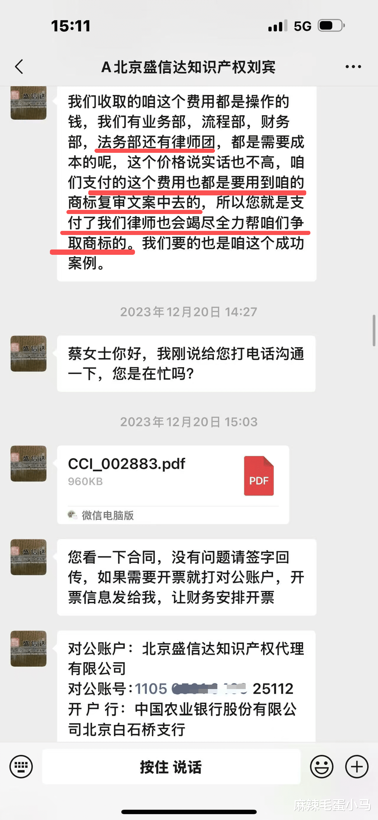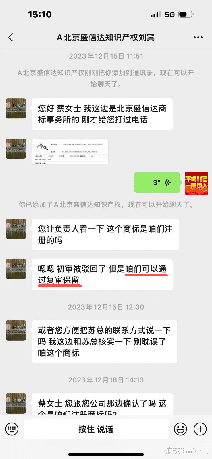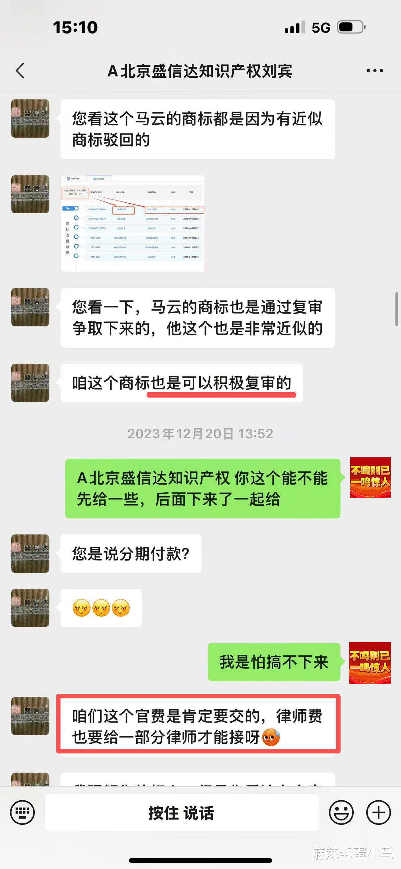 他们为了拉生意,一直在虚假宣传,动不动就跟我说“只要配合好复审肯定没问题”、“我们是请律师专门操作复审的”、“李冰律师是做了20年知识产权的老律师了,专门处理商标驳回复审和应诉,交给他您就放心吧”……这些话听起来好像很有把握,其实全是夸大其词、误导人,差不多九成以上的承诺都在暗示“复审就能过”,完全就是骗人的。