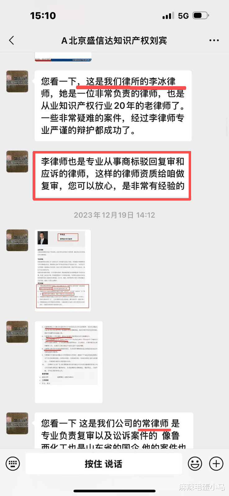 交了钱之后,他们连律师的委托手续都没给我,说是李冰律师在办我的事,但其实我连李冰律师的电话都没打一个,多次要求视频沟通也被拒绝,全程都是业务员在转达律师的要求,我高度怀疑我这复审案子根本就没律师负责!