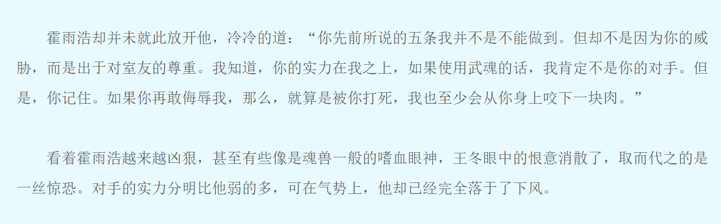 在原著小说中,霍雨浩早年的经历致使他性格内向,甚至有点自卑和孤僻,内心纯良的他在面对恶意时还是会展露狠厉的一面。比如霍雨浩和王冬初次见面就被刻意挑衅,他的反应就让人脊背发凉。