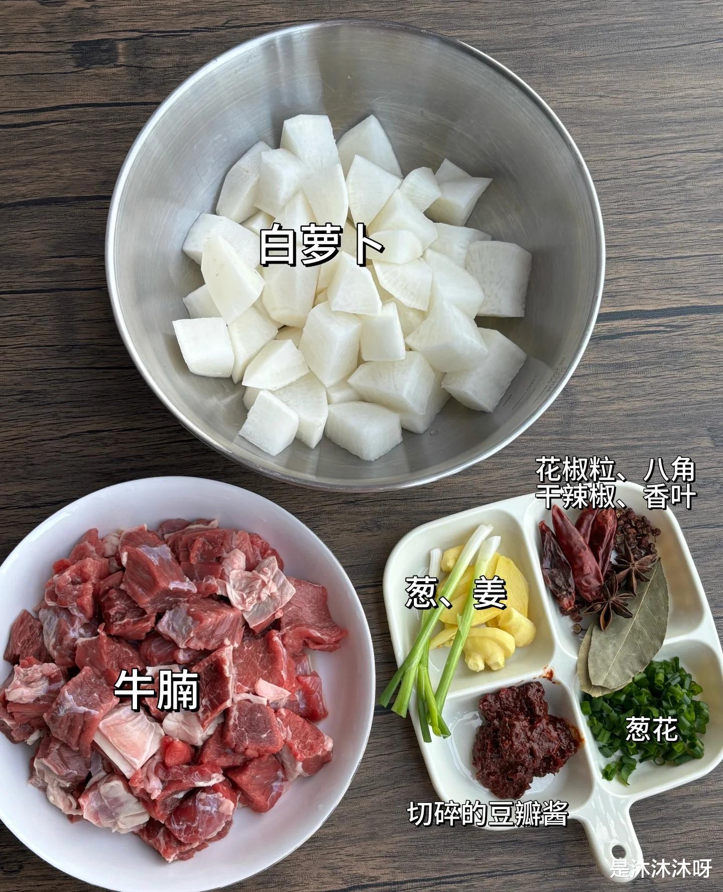 咱们得准备好食材,主角当然是牛腩和白萝卜,牛腩最好选那种带点筋膜和肥瘦相间的,这样炖出来口感才软糯不柴。白萝卜嘛,选沉甸甸、表皮光滑的,这样的水分足,口感好。