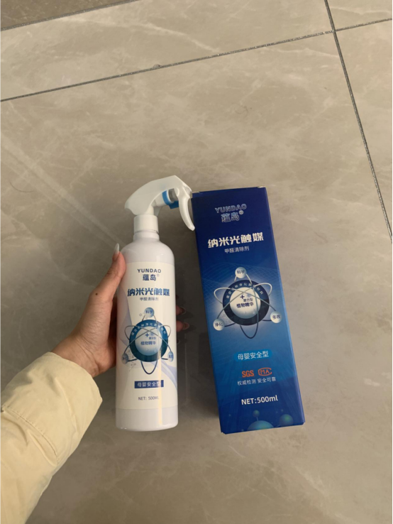 之前我也用了很多除甲醛喷雾,用下来感觉蕴岛除甲醛喷雾效果比较理想。它的主要成分是锐钛型光触媒、蛋白生物酶以及Ag+银离子,能够分解甲醛转化为水和二氧化碳,同时针对苯系物、TVOC、氨等也有一定治理作用。使用起来也很方便,对着家里的板材衣柜内部喷一喷,不需要紫外线照射也能持续反应,效果还是不错的。