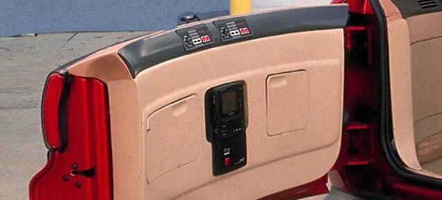 尾门内部整合了电视+VCR一体机,以及一套完整可运行的任天堂NES游戏机,手柄整齐收纳在专属槽位中,随插随玩。旁边还设有冷热储物箱,可以随时放置零食饮料。设计理念非常简单:让孩子在运动场、露营地或休息区停车时有事可做。在那个没有便携DVD、没有车载触控屏的年代,这完全是跨时代的飞跃。