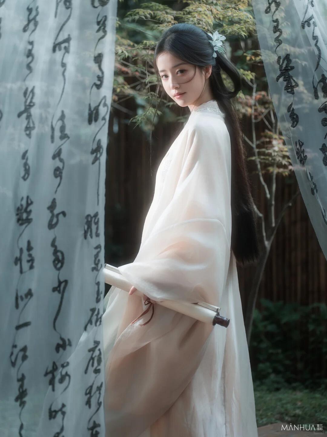 场景选择:首选古建庭院、竹林茶寮、暖阁书房等具有围合感的场景。雪后的古建庭院银装素裹,红灯笼与白雪形成强烈的色彩对比,极具视觉冲击力。暖阁书房中的炭火、茶具等元素,可强化冬季的温暖感。避免在空旷的室外长时间拍摄,以防模特受冻影响表现力。