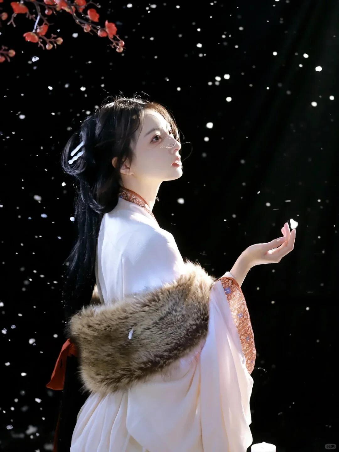 如何在严寒的天气里拍出兼具氛围感与温度感的古风人像?关键在于利用“暖”与“冷”的对比,营造出“晚来天欲雪,能饮一杯无”的温馨意境。冬季的光线柔和而纯净,为表现细腻的情绪与质感提供了绝佳条件。