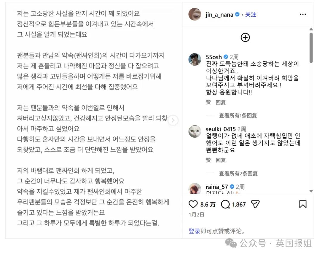 而NANA还特意发了一条INS安抚粉丝: