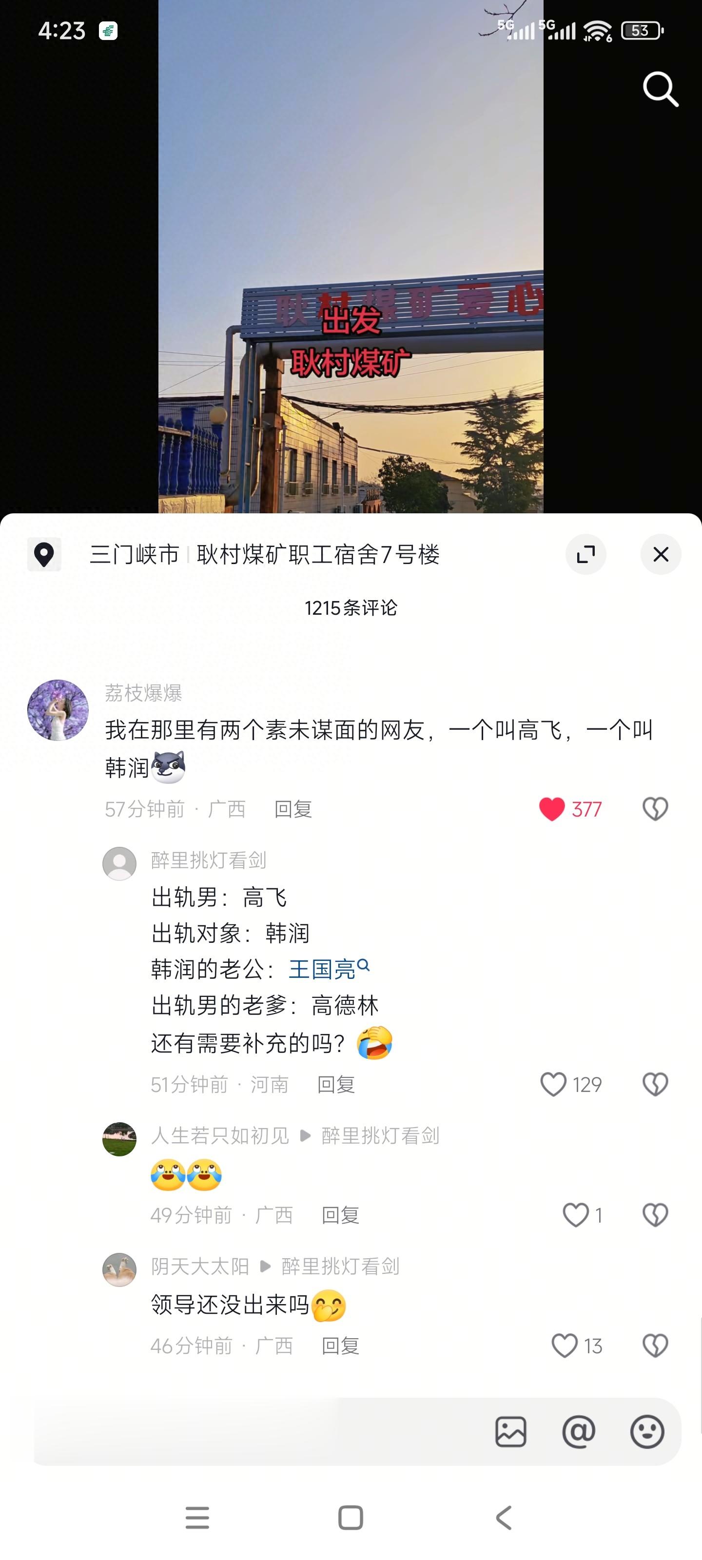 韩润和高飞好了几年了,高飞为耿村煤矿机电一队队长兼党支部书记,韩润(女)为同单位技术员,两人均已婚。