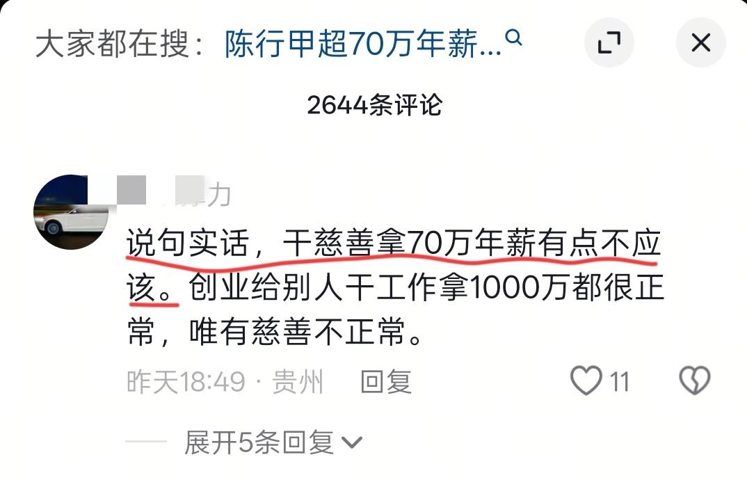 虽然他领取了高额工资,但公益需要顶尖专业人才来高效解决社会问题,而陈行甲创造的社会价值远超其薪酬,他拿的理所当然。