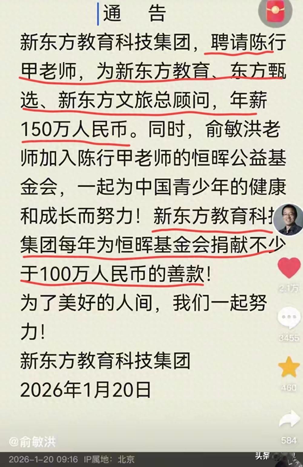 今天有个大新闻,新东方的老板俞敏洪,开出了150万的年薪,请来了那位曾经辞官做公益、最近正陷入“公益高薪”争议的陈行甲,让他担任新东方三大板块的总顾问。