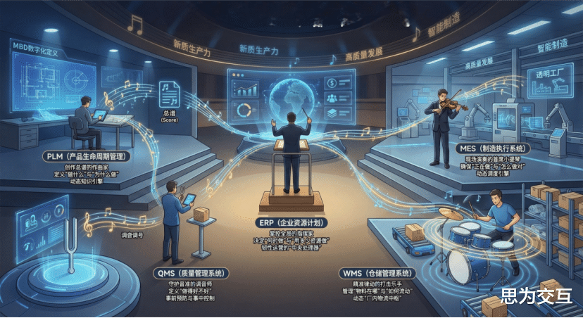 在数字化工厂的车间里,常有这样一幕:昂贵的系统屏幕闪烁着数据,却无人问津;工程师们仍在用纸质图纸讨论工艺;仓库管理员在电脑前反复核对库存。我们斥巨资引进了PLM、ERP、MES、WMS、QMS等系统,工厂却并未因此变得“智能”。数据在系统间“寂静”地沉睡,流程在各环节“喧嚣”地断裂。我们拥有了最先进的乐器,却始终奏不出一曲和谐的乐章。