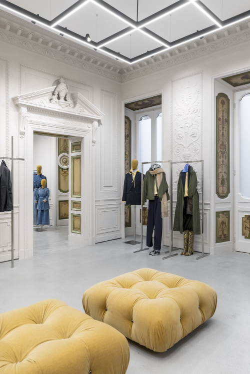作为MAX&Co. 协作精神与社群理念的具象化呈现,罗马旗舰店由多元创意团队共同构想。其设计灵感源自杂志的叙事逻辑与空间布局,通过多个主题区域营造出如翻阅杂志般的感官体验——每一处空间皆可探索、互动并激发灵感。动态化的场景设计既为当季新品提供展示空间,亦可成为特别企划与社群活动的多功能场域。