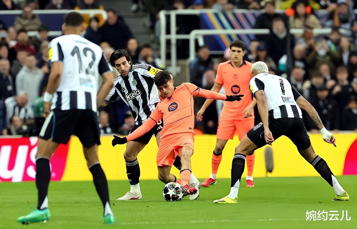上半场45分钟是战术博弈,纽卡依托主场优势以高强度逼抢压迫巴萨后场出球,第4分钟托纳利的角球便造成霍安·加西亚脱手,库巴西门线救险,成为主队全场战术的缩影。球队始终用身体对抗打乱巴萨的传控节奏,用快速反击制造威胁。巴萨控球占优,但受限于中场核心缺席与对手的强硬逼抢,传球成功率大幅低于赛季平均水平,难以将球有效渗透至对方禁区,亚马尔甚至遭遇欧冠生涯首次全场0过人的限制,刘易斯·霍尔的贴身防守让这位18岁天才无法发威,这也是接下来次回合巴萨需要解决症结。