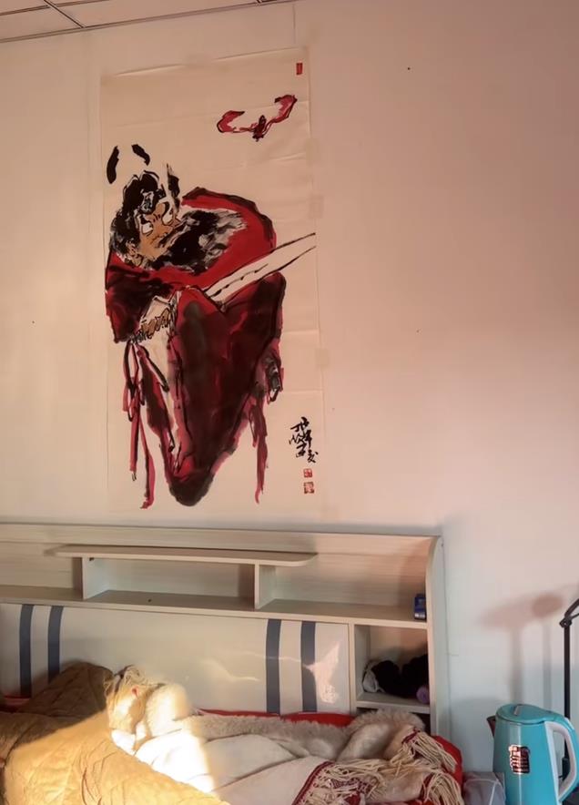 也许是为了方便,也许是因为某些特殊的原因。在网红“社会哥”的床头发现了一张特殊的东西,那便是“钟馗”的画像。