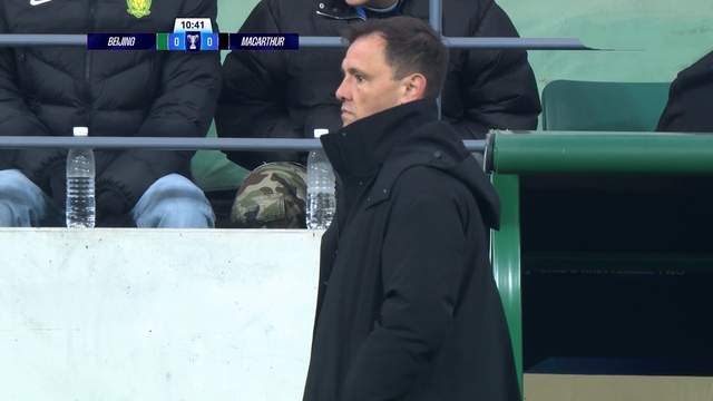 没有了成绩压力之后,国安踢得更加放松,在两个边路轮番发起冲击,比赛第10分钟,国安后场长传,方昊差一步没有拿到球。比赛第13分钟,塞尔吉尼奥巧妙一漏,乃比江服突入禁区倒三角传球,可惜被对手破坏。麦克阿瑟提前晋级,全队踢得也比较放松,防守端给了国安很多机会,比赛第17分钟,张稀哲大禁区前拿球稍作调整,一脚劲射高出横梁。