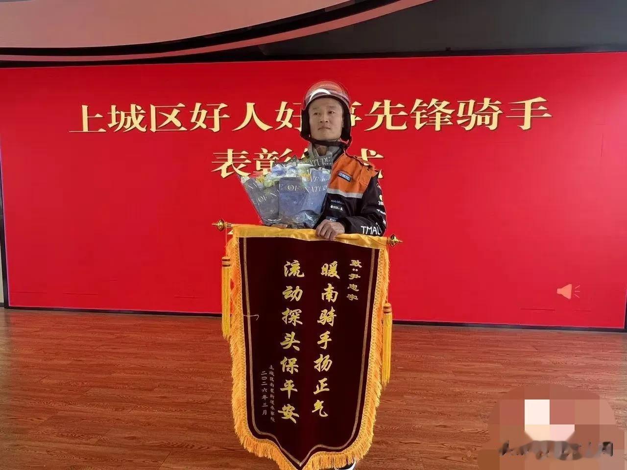 3月10日,在南星街道一场表彰大会也为尹忠宇而召开。当他接过上城区委社会工作部、应急管理局、天然气公司和外卖平台联合颁发的锦旗、荣誉证书和5000元奖金时,现场响起了经久不息的掌声。