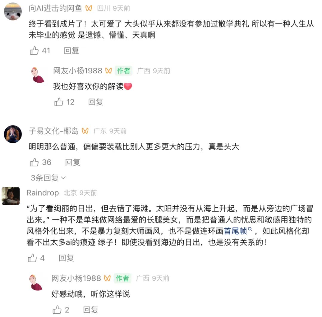AI带来的巨大掌控力与创作自由给了他足够的松弛感,他不再执着于“导演梦”这种宏大标签。表达本身,成了唯一重要的事。