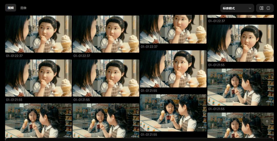 他采用了“故事后置”的创作方式,先根据人物设定片段式抽卡,大头是怎么样一步步走到今天?再根据视频生成效果选择素材。
