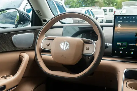 20 英寸掠风轮毂很扎实,带孩子去郊区玩,路上有段未铺装的碎石路,轮毂没有被刮花,回来洗车后和新的一样。车顶的禾赛128线激光雷达和车身自然融合,这点在杭州特别实用,毕竟市区绿化做的好,道路两旁枝繁叶茂,停车时不用担心被刮蹭到。另外,后视镜的自动折叠与加热功能,在雨雾天气很贴心,确保行车时视野清晰。车尾的贯穿式尾灯和车头呼应,线条利落干净,整体看着很协调。