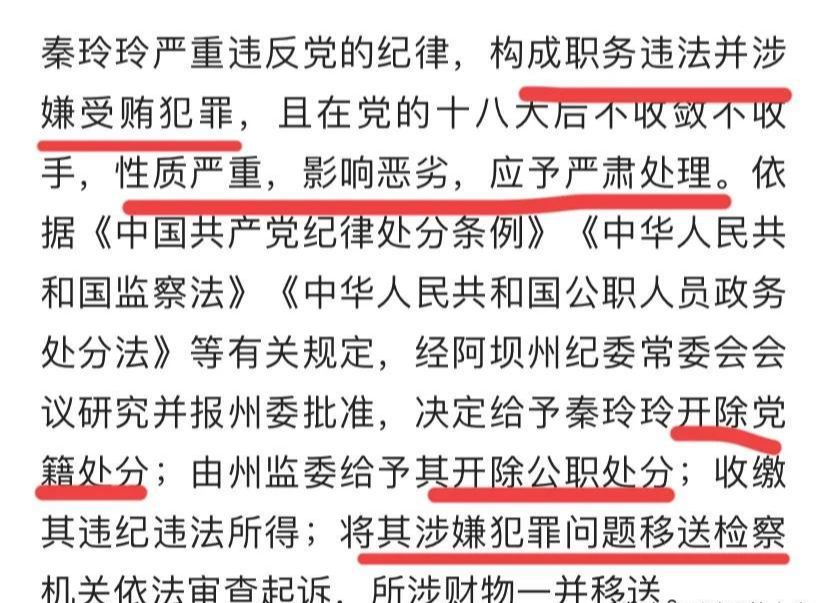 而且秦玲玲所犯错误均是公务员不能碰触的底线,收受财物,且数额较大,显然"双开"只是一个常规操作!