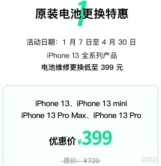 目前苹果中国官网公示的 iPhone14 系列保外电池更换费用为 729 元,Apple Store 直营店全程执行这个原价,没有任何折扣;而推出 13 系列半价活动的苹果授权服务商,也并未将 14 系列纳入优惠范围,仅个别门店在会员日有零星小额降价,更换价格大多在 600 元以上,远达不到半价的力度。