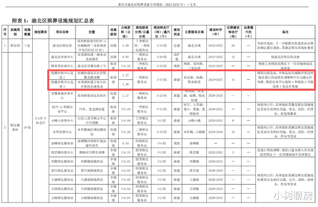 根据这份规划,未来渝北区总共规划1个殡仪馆和16处殡仪服务站/治丧中心,整整扩容了两倍,其中大部分都是新建设施。