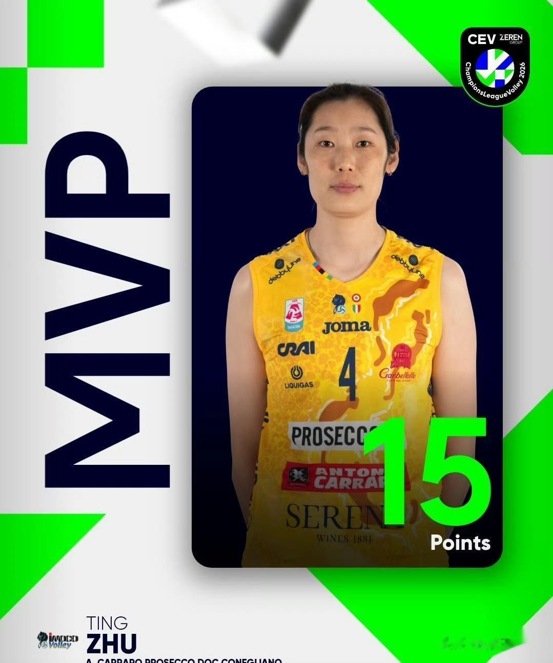 如果觉得龚翔宇是接应,那我们和主攻朱婷对比一下,科内利亚诺 3-0 零封贝加莫的比赛,朱婷3局获得15分,21扣13中1失误0被拦+成功率61%/有效率57%,1拦1发;全队第二多一传数12个0失误+到位率41%。