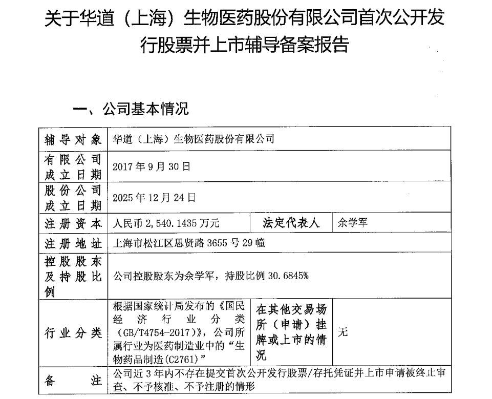 近日,证监会网站显示,华道(上海)生物医药股份有限公司(以下简称“华道生物”)向上海证监局办理辅导备案登记,辅导机构为平安证券股份有限公司。