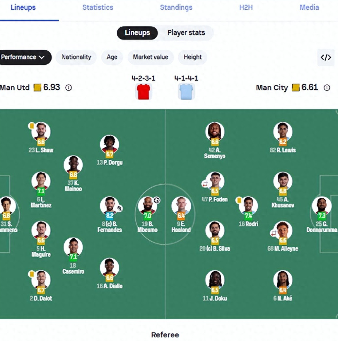 首发名单:库尼亚+塞斯科均落选这场比赛曼联的首发名单特别有意思,用了姆贝乌莫担任中锋,阿莫林时期常用的左右边翼卫阿玛德迪亚洛、多尔古担任左右边锋,B费重返前腰的位置。其实,这一套首发名单很清晰:利用阿玛德的控球能力、多尔古和姆贝乌莫的速度去冲刺。